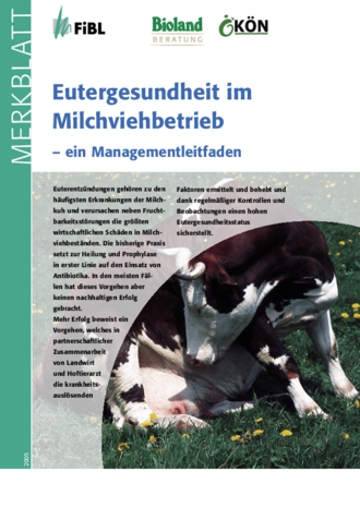 Das vorliegende Merkblatt bietet dir Empfehlungen zu einer schrittweisen, biokonformem Sanierung von Eutererkrankungen beim Milchvieh und zeigt auf, wie bei einem weitestgehenden Verzicht auf Antibiotika die Eutergesundheit langfristig erhalten werden kann.